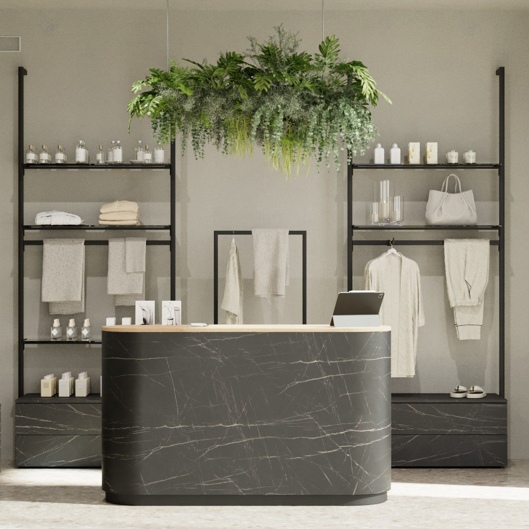 So fügt sich unser Verkaufstresen Coco in eine Boutique-Szene ein.