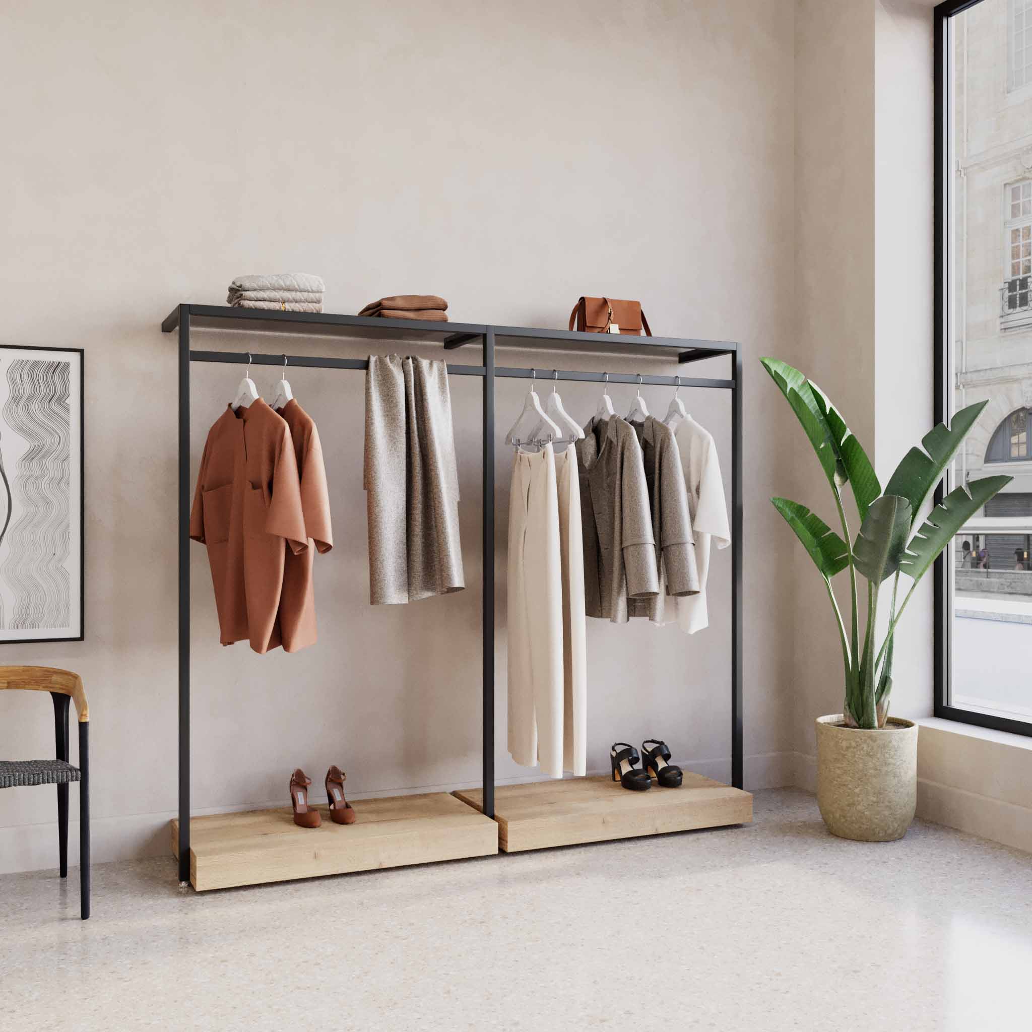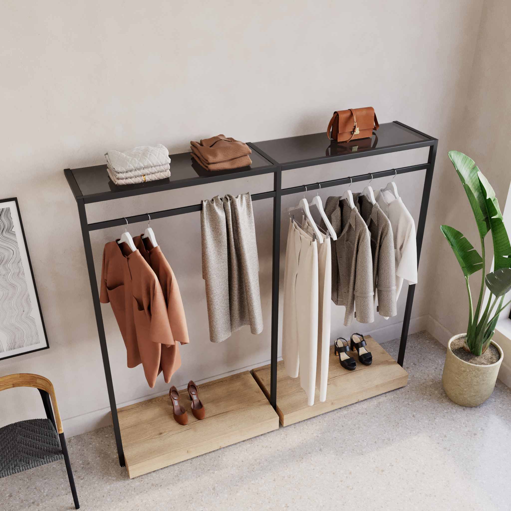 Kleiderstangensystem Ontario, B 203, schwarz, mit Podesten