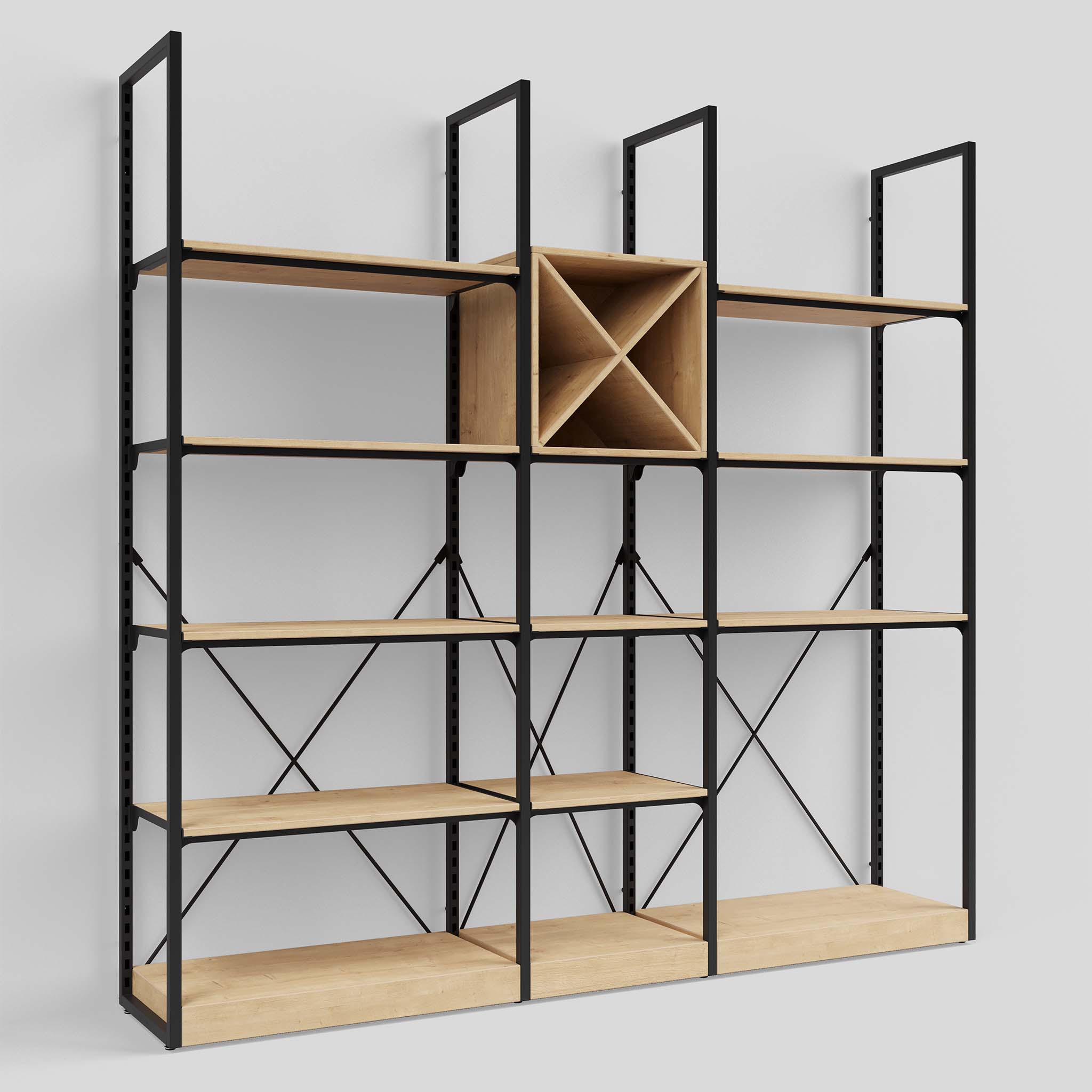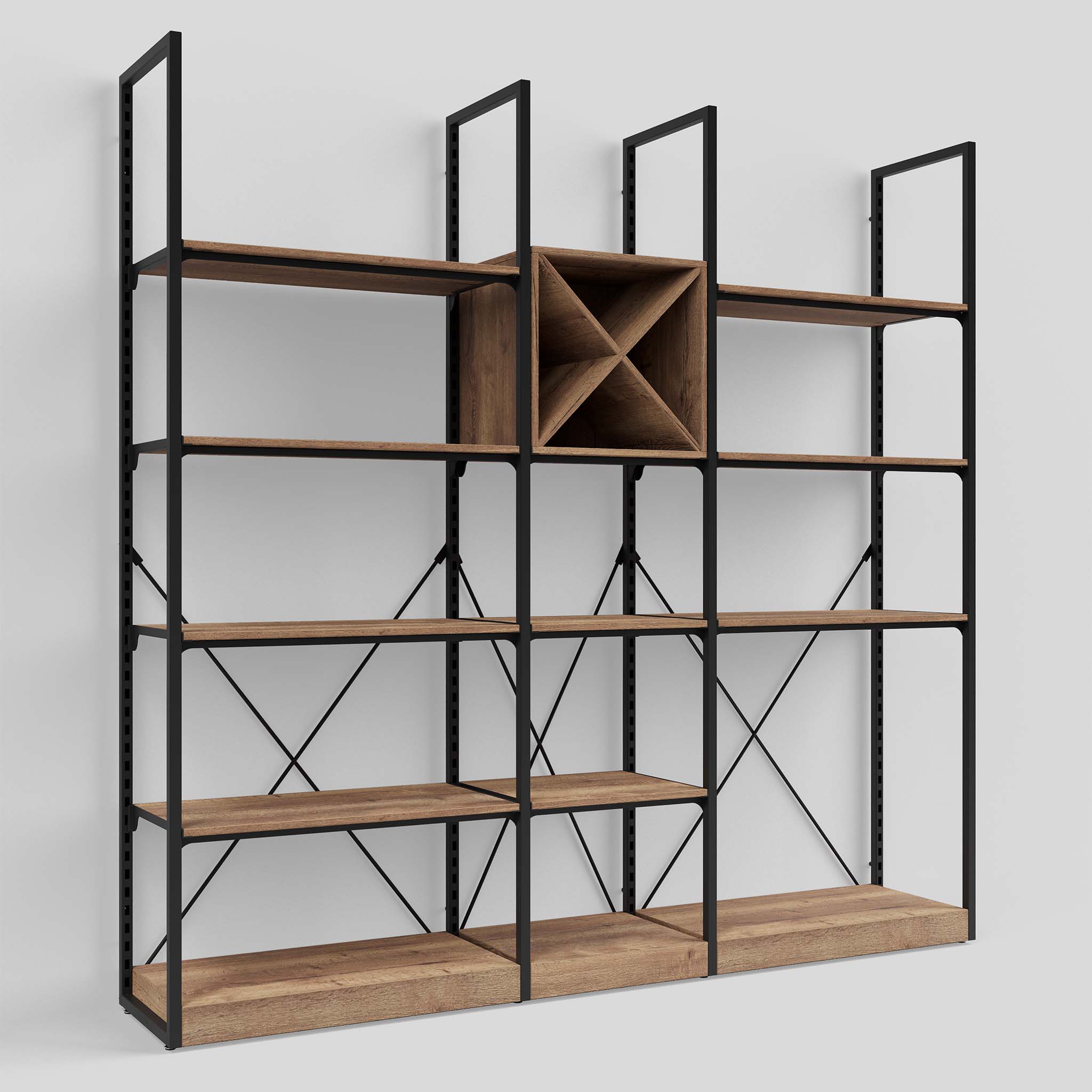 Das robuste Addison Weinregal kann dank der mitgelieferten Diagonalverbindern auch als freistehendes Regal verwendet werden, das keine Wandmontage benötigt. So lässt sich das Addison Weinregal auch als stilvoller Raumteiler verwenden.